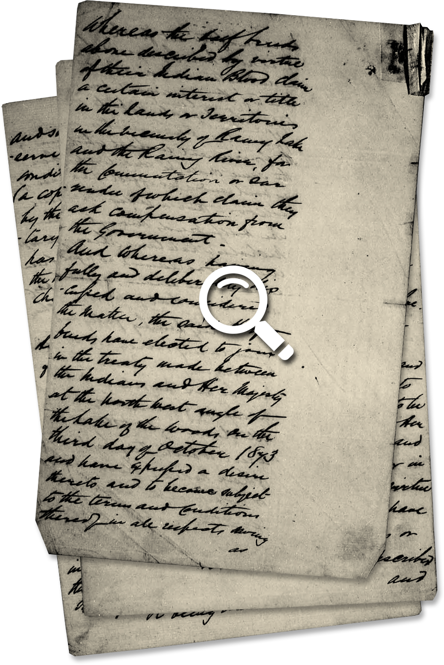 Métis were present as interpreters and witnesses when the Anishinaabe and Canada negotiated and signed Treaty No. 3 in 1873. While the Anishinaabe chiefs advocated for Métis inclusion in Treaty No.3 when it was signed in 1873, Canada refused, and the Métis were excluded. Métis leaders in Northwestern Ontario, such as Nicholas Chatelaine, spent the next two years asking the government to join treaty. Finally, in 1875, a distinct group of Métis, referred to as “Half-breeds of Rainy River and Rainy Lake,” signed the “Halfbreed Adhesion to Treaty No.3” which brought them into Treaty No. 3.